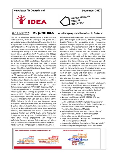 »To sharpen and implement our vision, IDEA brings together the experiences, skills and ideas of theatre artists, teachers and young performers in all their diversity. We develop workshops and performances; exchange expertise and resources; publish articles, books and CDs; and support the organisation of local, regional and world forums.«