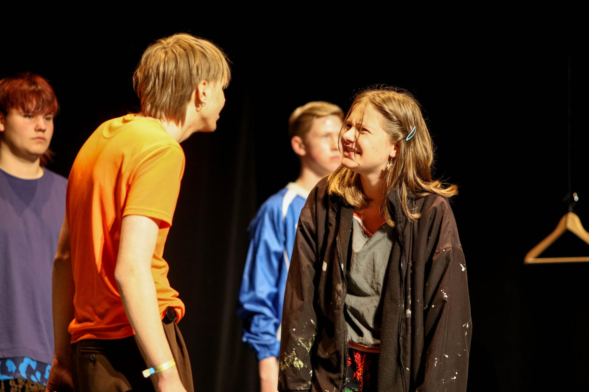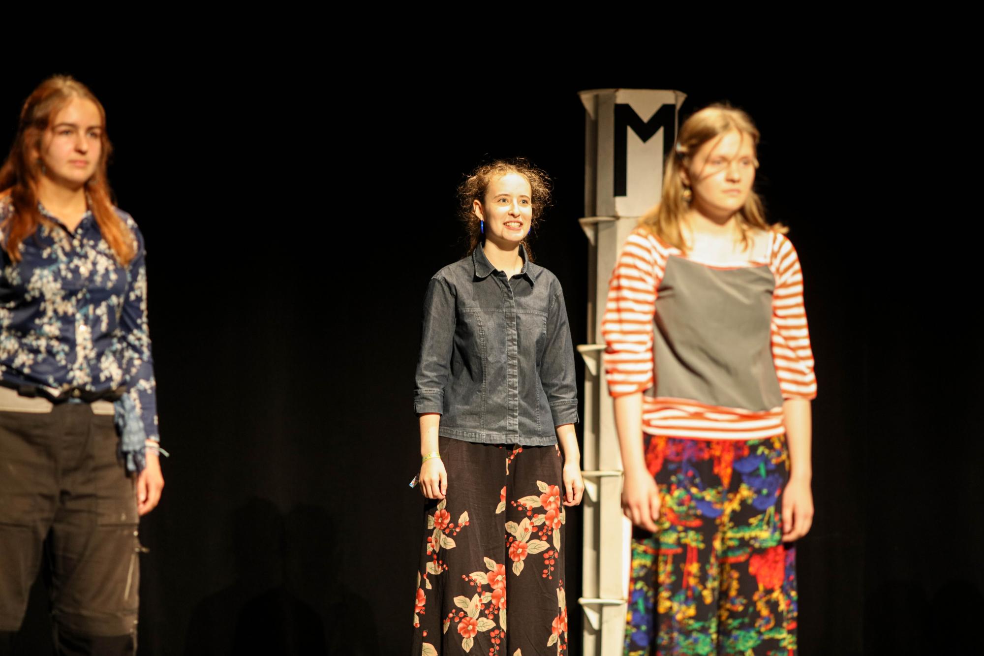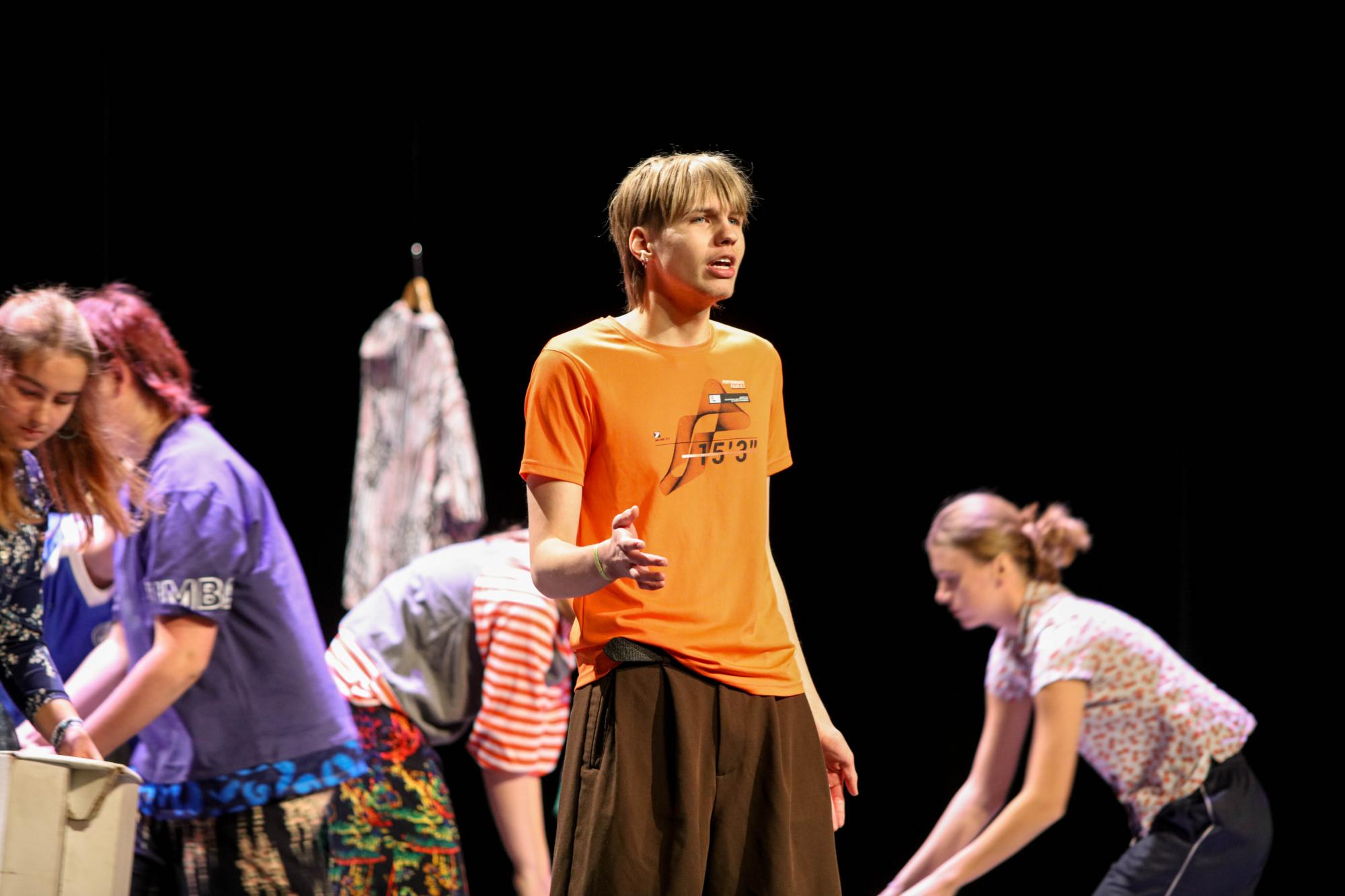 Zwischen Fragen nach der eigenen Identität und Kapitalismuskritik - das ist “Funken”, geschrieben von Till Wiebel und inszeniert vom evangelischen Ratsgymnasium aus Erfurt, Thüringen mit der Spielleitung von Vincent Kresse. Das Kollektiv lädt die Zuschauenden auf eine Reise in ein Ferienlager der Arthur McPush Cooperation ein, in dem es nur Kinder gibt.