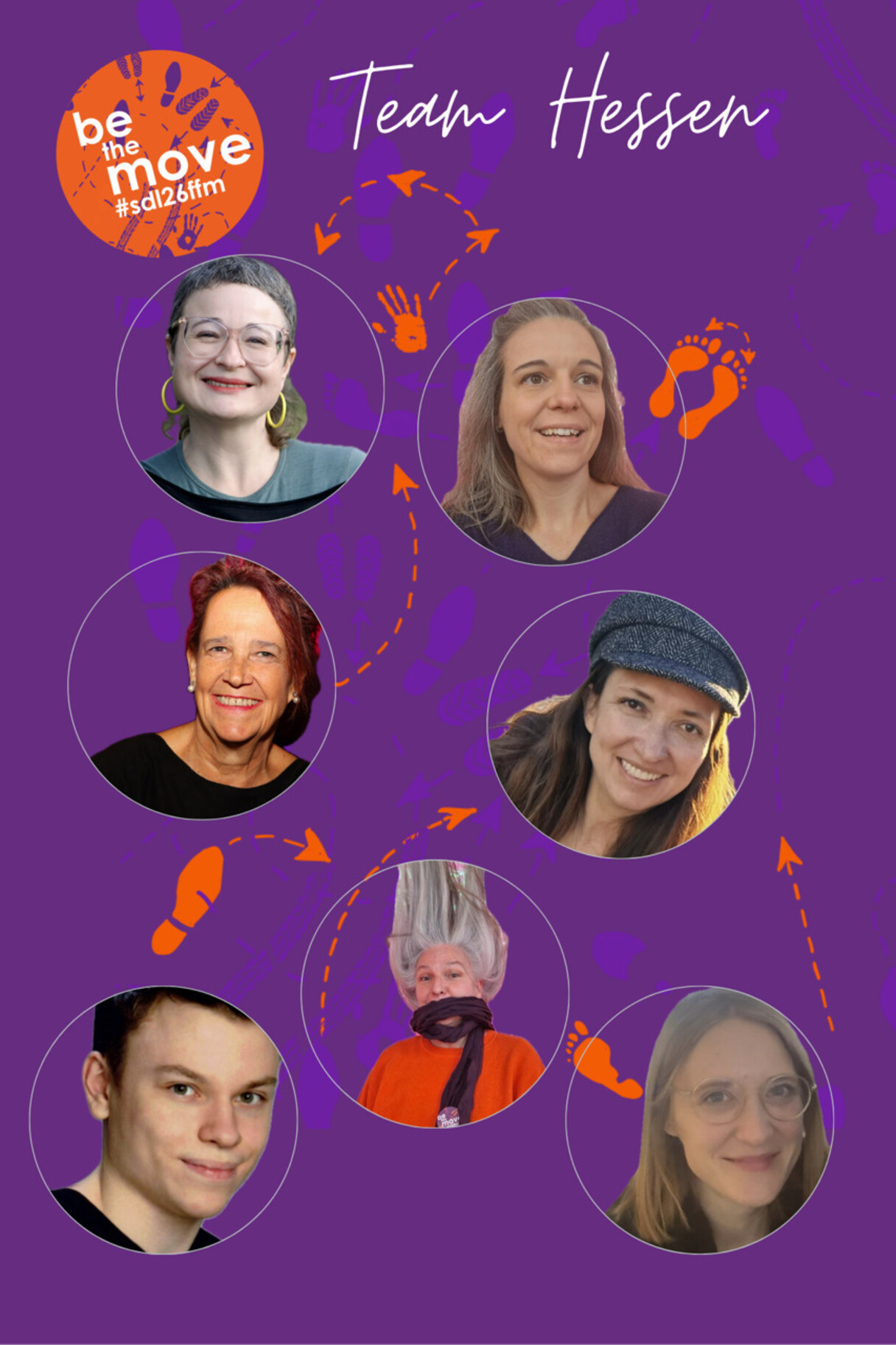 Bühnenfunkenfänger*innen und Spielgestalter*innen mit Herz aus dem Grundschul-, Real-, und Gymnasialbereich sowie aus dem Schultheaterstudio bilden das hessische Kernteam für die Organisation des SDL 2026 in Frankfurt.